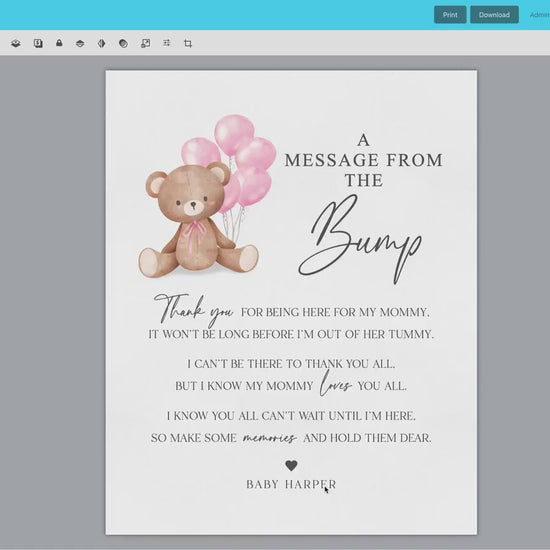 A Message from the Bump Baby Shower Sign, Bump Sign, Message From Baby, Bear Pink Balloons, Girl Baby Shower, PRINTABLE Template Download